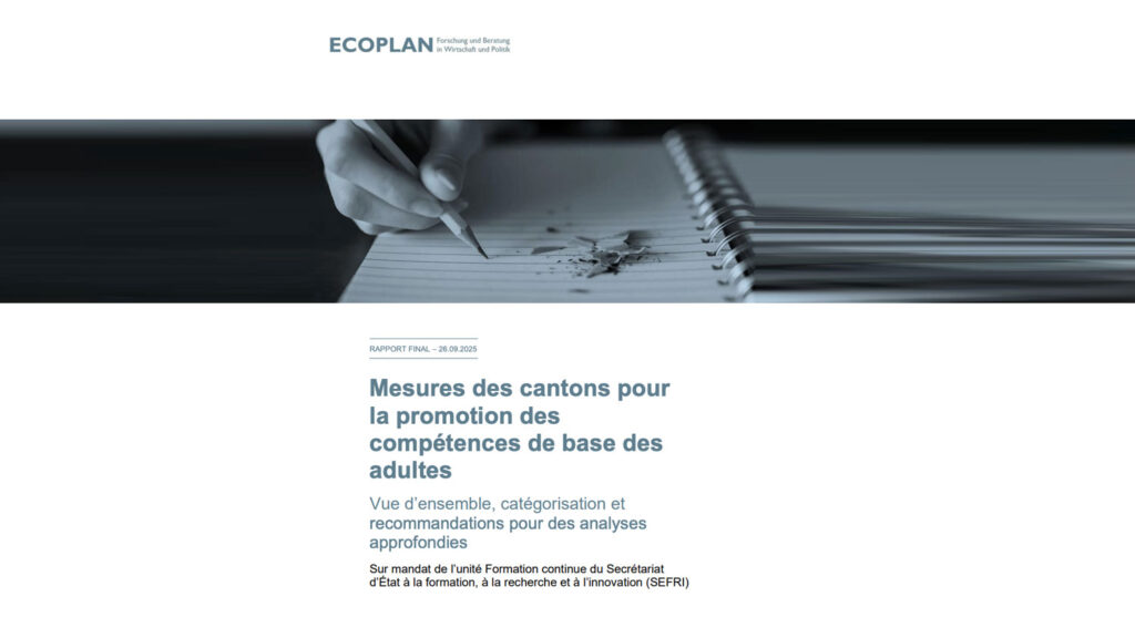 Das Staatssekretariat für Bildung, Forschung und Innovation (SBFI) hat eine Studie in Auftrag gegeben, um einen Überblick über die verschiedenen Massnahmen der Kantone zur Förderung der Grundkompetenzen Erwachsener (GKE) zu erhalten. Der Bericht von Ecoplan liegt nun vor und wurde veröffentlicht. Er bietet erstmals eine systematische Aufbereitung der kantonalen GKE-Programme sowie eine strukturierte Übersicht der Massnahmen auf kantonaler, regionaler und interkantonaler Ebene.